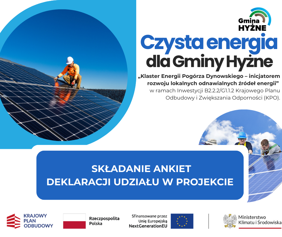 Dotyczy projektu: „Klaster Energii Pogórza Dynowskiego – inicjatorem rozwoju lokalnych odnawialnych źródeł energii” w ramach Inwestycji B2.2.2/G1.1.2 Krajowego Planu Odbudowy i Zwiększania Odporności (KPO).