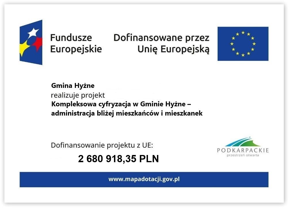 Gmina Hyżne zrealizowała projekt pn. „Kompleksowa cyfryzacja w Gminie Hyżne – administracja bliżej mieszkańców i mieszkanek” nr FEPK.01.02–IZ.00–0017/23